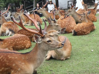 写真は奈良公園にたたずんでいた大量の鹿さん達です!